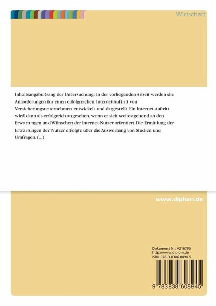 In der vorliegenden Arbeit werden die Anforderungen für einen erfolgreichen Internet-Auftritt von Versicherungsunternehmen entwickelt und dargestellt. Ein Internet-Auftritt wird dann als erfolgreich angesehen, wenn er sich weitestgehend an den Erwartungen und Wünschen der Internet-Nutzer orientiert. Die Ermittlung der Erwartungen der Nutzer erfolgte über die Auswertung von Studien und Umfragen.