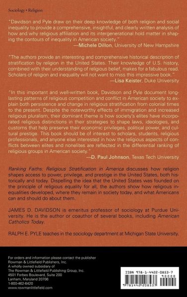 Ranking Faiths: Religious Stratification in America discusses how religion shapes access to power, privilege, and prestige in the U.S., both historically and today. Dispelling the idea that the U.S. was founded on the principle of religious equality for all, the authors show how religious inequalities developed, where they remain in society today, and what Americans can and should do about it.
