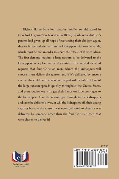 Eight children from four wealthy families are kidnapped in New York City on New Year's Eve in 1885. Just when the children's parents had given up all hope of ever seeing their children again, they each received a letter from the kidnappers with two demands, which must be met in order to secure the release of their children. The first demand requires a large ransom to be delivered to the kidnappers at a place to be determined. The second demand requires that four Christian men, whom the kidnappers will choose, must deliver the ransom and if it's delivered by anyone else, all the children that were kidnapped will be killed. News of the large ransom spreads quickly throughout the United States, and every outlaw wants to get their hands on it before it gets to the kidnappers. Can the ransom get through to the kidnappers and save the children's lives, or will the kidnappers kill their young captives because the ransom was never delivered to them or was delivered by someone other than the four Christian men that were chosen to deliver it?