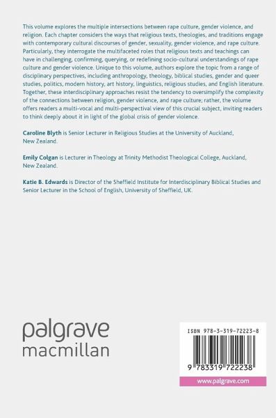 This volume explores the multiple intersections between rape culture, gender violence, and religion. Each chapter considers the ways that religious texts, theologies, and traditions engage with contemporary cultural discourses of gender, sexuality, gender violence, and rape culture. Particularly, they interrogate the multifaceted roles that religious texts and teachings can have in challenging, confirming, querying, or redefining socio-cultural understandings of rape culture and gender violence. Unique to this volume, authors explore the topic from a range of disciplinary perspectives, including anthropology, theology, biblical studies, gender and queer studies, politics, modern history, art history, linguistics, religious studies, and English literature. Together, these interdisciplinary approaches resist the tendency to oversimplify the complexity of the connections between religion, gender violence, and rape culture; rather, the volume offers readers a multi-vocal and multi-perspectival view of this crucial subject, inviting readers to think deeply about it in light of the global crisis of gender violence.