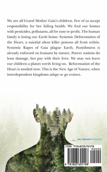 We are all Grand Mother Gaia's children. Few of us accept responsibility for her failing health. We foul our homes with pesticides, pollutants, all for ease or profit. The human family is losing our Earth home. Systemic Deforestation of the Heart, a suicidal silent killer poisons all from within. Systemic Rapes of Gaia plague Earth. Punishment is already enforced on humans by nature. Poorer nations do least damage, but pay with their lives. We may not leave our children a planet worth living on. Reforestation of the Heart is needed now. This is the New Age of Nature, when interdependent kingdoms adapt or go extinct.