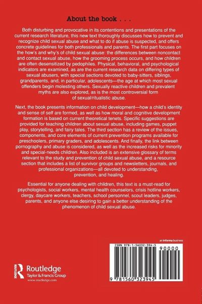 CHAPTER 1 THE MANY FACES OF CHILD SEXUAL ABUSE CHAPTER 2 INDICATORS OF CHILD SEXUAL ABUSE: CHILDREN AT RISK CHAPTER 3 SEXUAL ABUSER PROFILES CHAPTER 4 THE HOWS AND WHYS OF VICTIMIZATION CHAPTER 5 RITUALISTIC ABUSE CHAPTER 6 PARENTS AS PROTECTORS CHAPTER 7 DEVELOPMENT OF THE CHILD: ORIGINS OF THE SELF CHAPTER 8 PREVENTION PROGRAMS FOR PRESCHOOLERS, PRIMARY GRADERS, AND ADOLESCENTS CHAPTER 9 ISSUES AND COMPONENTS OF PREVENTION PROGRAMS CHAPTER 10 CHILD SEXUAL ABUSE AND PORNOGRAPHY CHAPTER 11 MINORITY CHILDREN CHAPTER 12 CHILDREN WITH SPECIAL NEEDS