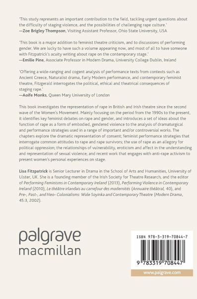 This book investigates the representation of rape in British and Irish theatre since the second wave of the Women's Movement. Mainly focusing on the period from the 1990s to the present, it identifies key feminist debates on rape and gender, and introduces a set of ideas about the function of rape as a form of embodied, gendered violence to the analysis of dramaturgical and performance strategies used in a range of important and/or controversial works. The chapters explore the dramatic representation of consent; feminist performance strategies that interrogate common attitudes to rape and rape survivors; the use of rape as an allegory for political oppression; the relationships of vulnerability, eroticism and affect in the understanding and representation of sexual violence; and recent work that engages with anti-rape activism to present women's personal experiences on stage.