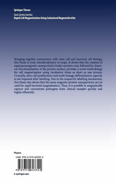 Bringing together nanoscience with stem cell and bacterial cell biology, this thesis is truly interdisciplinary in scope. It shows that the creation of superparamagnetic nanoparticles inside a protein coat, followed by chemical functionalisation of the protein surface, provides a novel methodology for cell magnetisation using incubation times as short as one minute. Crucially, stem cell proliferation and multi-lineage differentiation capacity is not impaired after labelling. Due to the unspecific labelling mechanism, this thesis also shows that the same magnetic protein nanoparticles can be used for rapid bacterial magnetisation. Thus, it is possible to magnetically capture and concentrate pathogens from clinical samples quickly and highly efficiently.