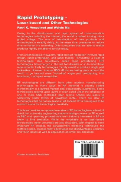 This book provides an updated overview of RP technologies at a level of detail that university engineering students taking courses on RP as well R&D and operating professionals from industry interested in RP are likely to find attractive. While the emphasis is on laser-based technologies, other processes are also discussed. With respect to each important RP process, the part/assembly modeling techniques, the materials used, process itself, advantages and disadvantages, accuracy and finish issues as well as application potential are discussed.