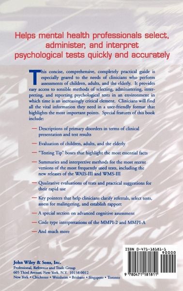 In today's time-pressured managed care environment, it is important for clinicians to quickly identify the nature of a patient's problem and initiate treatment. With thousands of psychological instruments available, this can often be difficult. This book offers a form of psychological assessment "triage." It eliminates the guesswork and helps psychologists quickly select, administer, and interpret psychological tests.
