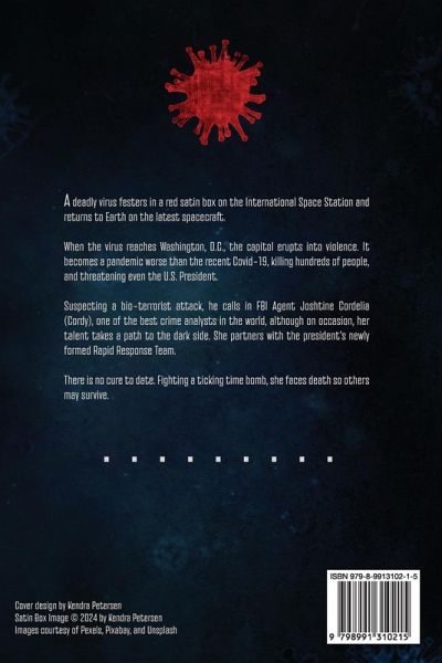 A deadly virus festers in a red satin box on the International Space Station and returns to Earth on the latest space shuttle. When the virus reaches Washington, D.C., the Capitol erupts into violence and terror, killing hundreds of people, and threatening even the U.S. president. Suspecting a bioterrorist attack, he calls in FBI Agent Joshtine Cordelia (Cordy), one of the best crime analysts in the world, although on occasion, her talent takes a path to the dark side. She partners with the president's newly formed Rapid Response Team. There is no cure to date. Fighting a ticking time bomb, they face death so others may survive.…mehr