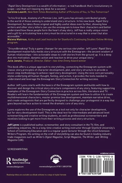 "In his first book, Anatomy of a Premise Line, Jeff Lyons has already contributed greatly to the world of those seeking to understand story structure. In his new book, Rapid Story Development, he takes those original and highly useful ideas even further, showing how writers and other story tellers can use the enneagram to know their characters and better understand how these people form the heart of any story. Jeff has a really unique vision and a gift for articulating how a story must be structured in a way that is smart but also accessible."