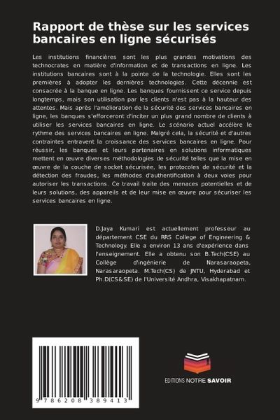 Les institutions financières sont les plus grandes motivations des technocrates en matière d'information et de transactions en ligne. Les institutions bancaires sont à la pointe de la technologie. Elles sont les premières à adopter les dernières technologies. Cette décennie est consacrée à la banque en ligne. Les banques fournissent ce service depuis longtemps, mais son utilisation par les clients n'est pas à la hauteur des attentes. Mais après l'amélioration de la sécurité des services bancaires en ligne, les banques s'efforceront d'inciter un plus grand nombre de clients à utiliser les services bancaires en ligne. Le scénario actuel accélère le rythme des services bancaires en ligne. Malgré cela, la sécurité et d'autres contraintes entravent la croissance des services bancaires en ligne. Pour réussir, les banques et leurs partenaires en solutions informatiques mettent en oeuvre diverses méthodologies de sécurité telles que la mise en oeuvre de la couche de socket sécurisée, les protocoles de sécurité et la détection des fraudes, les méthodes d'authentification à deux voies pour autoriser les transactions. Ce travail traite des menaces potentielles et de leurs solutions, des appareils et de leur mise en oeuvre pour sécuriser les services bancaires en ligne.