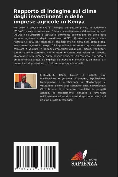 Nel 2010, il programma GTZ ¿Sviluppo del settore privato in agricoltura (PSDA)¿, in collaborazione con l'Unità di coordinamento del settore agricolo (ASCU), ha sviluppato e testato lo strumento dell'indagine sul clima delle imprese agricole e degli investimenti (ABIC). Questa indagine è stata ripetuta nel 2013 per conoscere i cambiamenti nel clima degli affari e degli investimenti agricoli in Kenya. Gli imprenditori del settore agricolo devono calcolare e valutare le opzioni commerciali quasi ogni giorno. Produttori, trasformatori e commercianti in tutte le catene del valore dei prodotti alimentari e delle materie prime devono decidere se acquistare o vendere a un determinato prezzo, se impiegare o meno la manodopera, se investire in nuove linee di produzione o sfruttare meglio quelle attuali.
