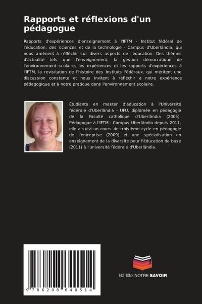 Rapports d'expériences d'enseignement à l'IFTM - Institut fédéral de l'éducation, des sciences et de la technologie - Campus d'Uberlândia, qui nous amènent à réfléchir sur divers aspects de l'éducation. Des thèmes d'actualité tels que l'enseignement, la gestion démocratique de l'environnement scolaire, les expériences et les rapports d'expériences à l'IFTM, la revisitation de l'histoire des Instituts Fédéraux, qui méritent une discussion constante et nous invitent à réfléchir à notre expérience pédagogique et à notre pratique dans l'environnement scolaire.