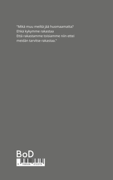 "Mikä muu meiltä jää huomaamatta? Ehkä kykymme rakastaa Että rakastamme toisiamme niin ettei meidän tarvitse rakastaa."