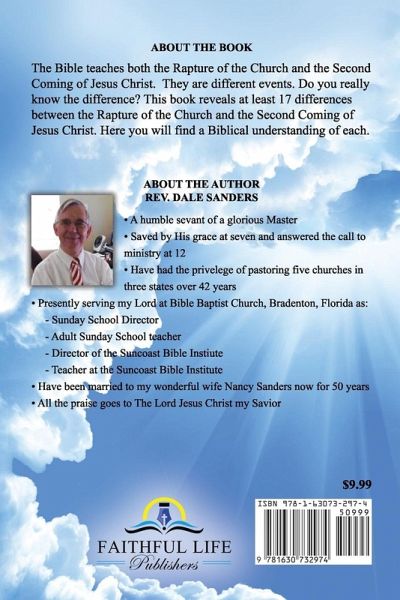 The Bible teaches both the Rapture of the Church and the Second Coming of Jesus Christ. They are different events. Do you really know the difference? This book reveals at least 17 differences between the Rapture of the Church and the Second Coming of Jesus Christ. Here you will find a Biblical understanding of each.