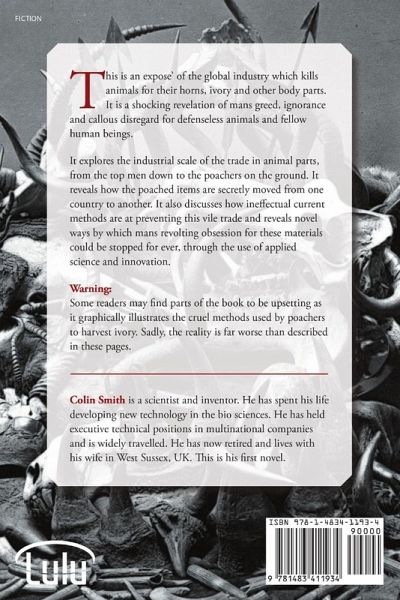 This is an expose' of the global industry which kills animals for their horns, ivory and other body parts. It is a shocking revelation of mans greed, ignorance and callous disregard for defenseless animals and fellow human beings. It explores the industrial scale of the trade in animal parts, from the top men down to the poachers on the ground. It reveals how the poached items are secretly moved from one country to another. It also discusses how ineffectual current methods are at preventing this vile trade and reveals novel ways by which mans revolting obsession for these materials could be stopped for ever, through the use of applied science and innovation. Warning; Some readers may find parts of the book to be upsetting as it graphically illustrates the cruel methods used by poachers to harvest ivory. Sadly, the reality is far worse than described in these pages.