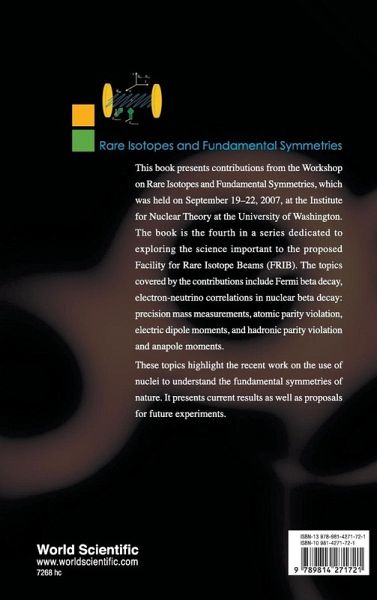 This book presents contributions from the Workshop on Rare Isotopes and Fundamental Symmetries, which was held on September 1922, 2007, at the Institute for Nuclear Theory at the University of Washington. The book is the fourth in a series dedicated to exploring the science important to the proposed Facility for Rare Isotope Beams (FRIB). The topics covered by the contributions include Fermi beta decay, electron-neutrino correlations in nuclear beta decay: precision mass measurements, atomic parity violation, electric dipole moments, and hadronic parity violation and anapole moments. These topics highlight the recent work on the use of nuclei to understand the fundamental symmetries of nature. It presents current results as well as proposals for future experiments.