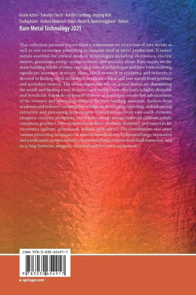 This collection presents papers from a symposium on extraction of rare metals as well as rare extraction processing techniques used in metal production. It covers metals essential for critical modern technologies including electronics, electric motors, generators, energy storage systems, and specialty alloys. Rare metals are the main building blocks of many emerging critical technologies and have been receiving significant attention in recent years. Much research in academia and industry is devoted to finding novel techniques to extract critical and rare metals from primary and secondary sources. The technologies that rely on critical metals are dominating the world, and finding a way to extract and supply them effectively is highly desirable and beneficial. Rapid development of these technologies entails fast advancement of the resource and processing industry for their building materials. Authors from academia and industry exchange knowledge on developing, operating,and advancing extractive and processing technologies. Contributions cover rare-earth elements (magnets, catalysts, phosphors, and others), energy storage materials (lithium, cobalt, vanadium, graphite), alloy elements (scandium, niobium, titanium), and materials for electronics (gallium, germanium, indium, gold, silver). The contributions also cover various processing techniques in mineral beneficiation, hydrometallurgy, separation and purification, pyrometallurgy, electrometallurgy, supercritical fluid extraction, and recycling (batteries, magnets, electrical and electronic equipment).