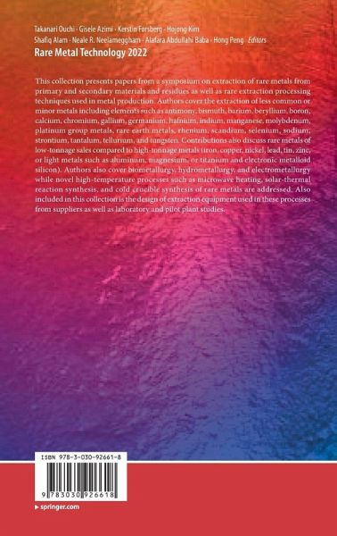This collection presents papers from a symposium on extraction of rare metals from primary and secondary materials and residues as well as rare extraction processing techniques used in metal production. Authors cover the extraction of less common or minor metals including elements such as antimony, bismuth, barium, beryllium, boron, calcium, chromium, gallium, germanium, hafnium, indium, manganese, molybdenum, platinum group metals, rare earth metals, rhenium, scandium, selenium, sodium, strontium, tantalum, tellurium, and tungsten. Contributions also discuss rare metals of low-tonnage sales compared to high-tonnage metals (iron, copper, nickel, lead, tin, zinc, or light metals such as aluminum, magnesium, or titanium and electronic metalloid silicon). Authors also cover biometallurgy, hydrometallurgy, and electrometallurgy while novel high-temperature processes such as microwave heating, solar-thermal reaction synthesis, and cold crucible synthesis of rare metals are addressed. Also included in this collection is the design of extraction equipment used in these processes from suppliers as well as laboratory and pilot plant studies.