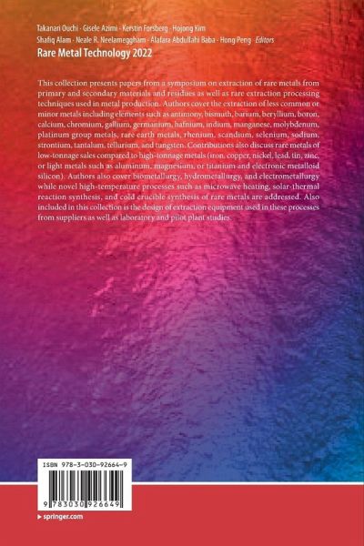 This collection presents papers from a symposium on extraction of rare metals from primary and secondary materials and residues as well as rare extraction processing techniques used in metal production. Authors cover the extraction of less common or minor metals including elements such as antimony, bismuth, barium, beryllium, boron, calcium, chromium, gallium, germanium, hafnium, indium, manganese, molybdenum, platinum group metals, rare earth metals, rhenium, scandium, selenium, sodium, strontium, tantalum, tellurium, and tungsten. Contributions also discuss rare metals of low-tonnage sales compared to high-tonnage metals (iron, copper, nickel, lead, tin, zinc, or light metals such as aluminum, magnesium, or titanium and electronic metalloid silicon). Authors also cover biometallurgy, hydrometallurgy, and electrometallurgy while novel high-temperature processes such as microwave heating, solar-thermal reaction synthesis, and cold crucible synthesis of rare metals are addressed. Also included in this collection is the design of extraction equipment used in these processes from suppliers as well as laboratory and pilot plant studies.