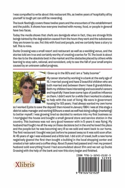 I was compelled to write about this restaurant life, as twelve years of hospitality all by yourself is tough yet can still be rewarding. The book fleetingly covers these twelve years and the encounters of the establishment and the public. It shows how everyone involved with money, food, or people in general have two faces. Today the media shows that chefs are demigods when in fact, they are strange little beings tainted by the degradation caused from the hours they work and the substances they are known to use. Put this with food and people, and we certainly have a story to tell. This is mine. Ducks Crossing was a small resort and restaurant as well as a wedding venue, and the stories told are true and certainly worthy of creating a series for TV. The book is about the rise to be the absolute best in the market and the obstacles placed by others while learning to stay calm, rational, and nonviolent, only to see the fall of your small empire caused by an unknown called progress.