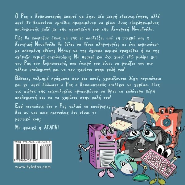 O Ras o Kompiouteras mporei na exei mia mikri idiaiterotita, alla afto de thewreitai empodio prokeimenou na ginei enas oloklirwmenos ypologistis mazi me tin agapimeni tou tin Kentriki Monadoyla. Pws tha mporoyse omws na tis to apodeiksei apo ti stigmi pou i Kentriki Monadoyla de thelei na dinei plirofories se ena kompioyter me spasmeni othoni; Mipws na tis egrafe merika tragoydia i na tis agoraze merika sokolatakia; Ma fysika kai oxi giati edw milame gia ton Ras ton Kompioutera, pou oneiro tou einai na ftiaksei ton pio teleio ypologisti kai na ton xarisei stin kali tou! Vevaia, tolmira pragmata san kai afto, xreiazontai ligi peripeteia kai giA afto allwste o Ras o Kompiouteras epilegei na gyrisei oles tis xwres tis texnologias prokeimenou na vrei ta kalytera meri ypologisti kai na ta xarisei stin kali tou! Esy pisteyeis oti o Ras telika ta katafere; Kai an nai poio pisteyeis oti einai to mystiko tou; Ma fysika i AGAPI! To vivlio perilamvanei drastiriotites gia ta paidia!