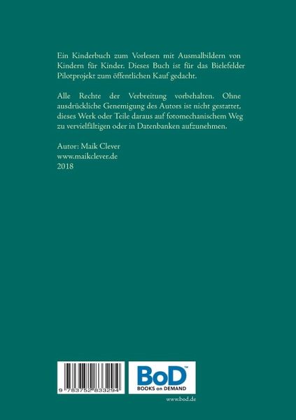 Kinderbuch zum Vorlesen mit Ausmalbildern von Kinder für Kinder. Dieses Buch ist für das Bielefelder Pilotprojekt zum öffentlichen Kauf gedacht.