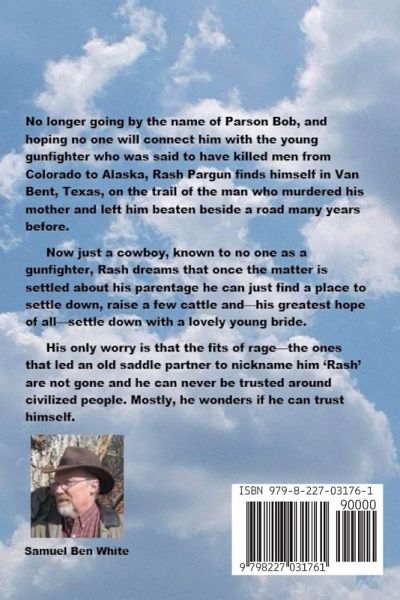 No longer going by the name of Parson Bob, and hoping no one will connect him with the young gunfighter who was said to have killed men from Colorado to Alaska, Rash Pargun finds himself in Van Bent, Texas, on the trail of the man who murdered his mother and left him beaten beside a road many years before. Now just a cowboy, known to no one as a gunfighter, Rash dreams that once the matter is settled about his parentage he can just find a place to settle down, raise a few cattle and-his greatest hope of all-settle down with a lovely young bride. His only worry is that the fits of rage-the ones that led an old saddle partner to nickname him "Rash"-are not gone and he can never be trusted around civilized people. Mostly, he wonders if he can trust himself.