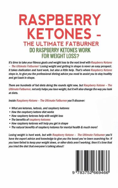 It's time to take your fitness goals and weight loss to the next level with "Raspberry Ketone - The Ultimate Fatburner!" Losing weight and getting in shape is never an easy prospect. It takes dedication and hard work, but also a little help. That's where Raspberry Ketone steps in, to give you the professional dieting advice you need to assist you to stay healthy and get back in shape. There are hundreds of fad diets doing the rounds right now, but Raspberry Ketone - The Ultimate Fatburner, not only helps you lose weight, but it will also change the way you look at diets. Inside Raspberry Ketone - The Ultimate Fatburner you'll discover: _ What are ketones, ketosis, and raspberry ketones _ How the raspberry ketone diet works_ How raspberry ketones help with weight loss_ The benefits of raspberry ketones _ How raspberry ketones will help you get in shape_ The natural benefits of raspberry ketones for mental health & much more!Losing weight is hard work, but with Raspberry Ketone - The Ultimate Fatburner you'll have the expert advice and knowledge to give you the boost you've been searching for. If you have failed to keep your weight down, or other diets aren't working, then it's time that you tried the diet that everyone's talking about!