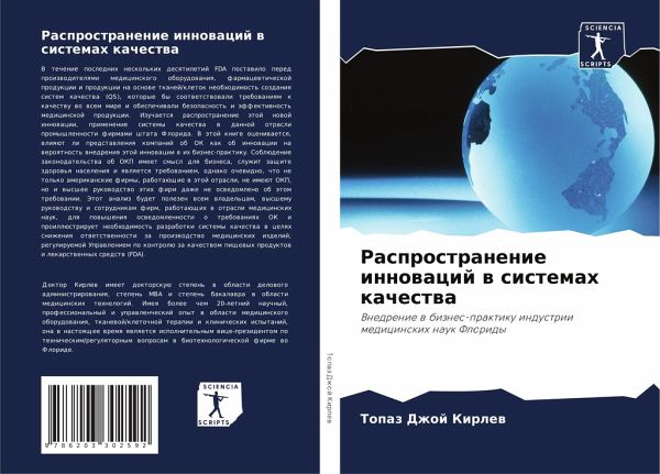 V techenie poslednih neskol'kih desqtiletij FDA postawilo pered proizwoditelqmi medicinskogo oborudowaniq, farmacewticheskoj produkcii i produkcii na osnowe tkanej/kletok neobhodimost' sozdaniq sistem kachestwa (QS), kotorye by sootwetstwowali trebowaniqm k kachestwu wo wsem mire i obespechiwali bezopasnost' i äffektiwnost' medicinskoj produkcii. Izuchaetsq rasprostranenie ätoj nowoj innowacii, primenenie sistemy kachestwa w dannoj otrasli promyshlennosti firmami shtata Florida. V ätoj knige oceniwaetsq, wliqüt li predstawleniq kompanij ob OK kak ob innowacii na weroqtnost' wnedreniq ätoj innowacii w ih biznes-praktiku. Soblüdenie zakonodatel'stwa ob OKP imeet smysl dlq biznesa, sluzhit zaschite zdorow'q naseleniq i qwlqetsq trebowaniem, odnako ochewidno, chto ne tol'ko amerikanskie firmy, rabotaüschie w ätoj otrasli, ne imeüt OKP, no i wysshee rukowodstwo ätih firm dazhe ne oswedomleno ob ätom trebowanii. Jetot analiz budet polezen wsem wladel'cam, wysshemu rukowodstwu i sotrudnikam firm, rabotaüschih w otrasli medicinskih nauk, dlq powysheniq oswedomlennosti o trebowaniqh OK i proillüstriruet neobhodimost' razrabotki sistemy kachestwa w celqh snizheniq otwetstwennosti za proizwodstwo medicinskih izdelij, reguliruemoj Uprawleniem po kontrolü za kachestwom pischewyh produktow i lekarstwennyh sredstw (FDA).
