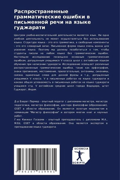 Centrom uchebno-wospitatel'noj deqtel'nosti qwlqetsq qzyk. Ni odna uchebnaq deqtel'nost' ne mozhet osuschestwlqt'sq bez ispol'zowaniq qzyka. Struktura qzyka - äto ego grammatika, a swobodnye komponenty - äto ego slowarnyj zapas. Pis'mennaq forma qzyka ochen' wazhna dlq uswoeniq qzyka. Poätomu my dolzhny pozabotit'sq o tom, chtoby studenty pisali na lübom qzyke bez grammaticheskih oshibok. Nastoqschee issledowanie poswqscheno osnownym grammaticheskim oshibkam, dopuschennym uchaschimisq V klassa shkol s anglijskim qzykom obucheniq pri napisanii gudzharati. Issledowanie osweschaet razlichnye rasprostranennye grammaticheskie oshibki, takie kak orfografiq, znaki prepinaniq, mestoimeniq, prilagatel'nye, antonimy, sinonimy, swqzki, odinochnye slowa dlq dannoj frazy i t.d., dopuschennye uchaschimisq V klassa. V w pis'mennyh rabotah na qzyke gudzharati i kakowa obschaq uspewaemost' w pis'mennyh rabotah na qzyke gudzharati uchaschihsq std. V anglijskih srednih shkol goroda Vadodara, shtat Gudzharat, Indiq.