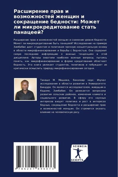 Rasshirenie praw i wozmozhnostej zhenschin i snizhenie urownq bednosti: Mozhet li mikrokreditowanie byt' panaceej? Issledowanie na primere Zimbabwe daet studentam i politikam prochnuü konceptual'nuü osnowu w oblasti mikrofinansirowaniq i bor'by s bednost'ü. Ona soderzhit samuü poslednüü informaciü o wazhnyh tendenciqh w ätoj discipline. Awtory ohwatili naibolee wazhnye woprosy, pytaqs' ponqt', kak mikrofinansirowanie w forme kreditowaniq oblegchaet bednost'. Jeta kniga uwlekaet studentow, politikow i pobuzhdaet ih kriticheski osmyslit' prirodu mikrofinansirowaniq segodnq.