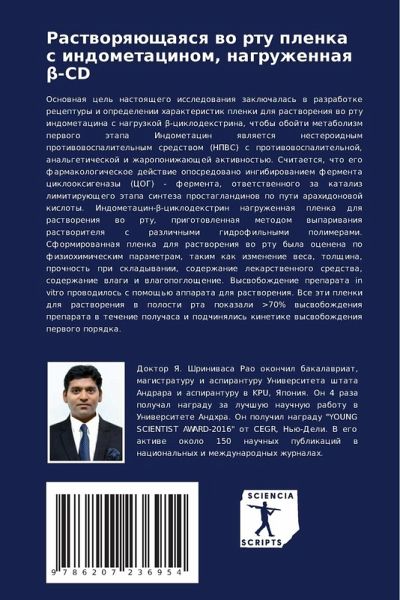 Osnownaq cel' nastoqschego issledowaniq zaklüchalas' w razrabotke receptury i opredelenii harakteristik plenki dlq rastworeniq wo rtu indometacina s nagruzkoj ¿-ciklodextrina, chtoby obojti metabolizm perwogo ätapa Indometacin qwlqetsq nesteroidnym protiwowospalitel'nym sredstwom (NPVS) s protiwowospalitel'noj, anal'geticheskoj i zharoponizhaüschej aktiwnost'ü. Schitaetsq, chto ego farmakologicheskoe dejstwie oposredowano ingibirowaniem fermenta ciklooxigenazy (COG) - fermenta, otwetstwennogo za kataliz limitiruüschego ätapa sinteza prostaglandinow po puti arahidonowoj kisloty. Indometacin-¿-ciklodextrin nagruzhennaq plenka dlq rastworeniq wo rtu, prigotowlennaq metodom wypariwaniq rastworitelq s razlichnymi gidrofil'nymi polimerami. Sformirowannaq plenka dlq rastworeniq wo rtu byla ocenena po fiziohimicheskim parametram, takim kak izmenenie wesa, tolschina, prochnost' pri skladywanii, soderzhanie lekarstwennogo sredstwa, soderzhanie wlagi i wlagopogloschenie. Vyswobozhdenie preparata in vitro prowodilos' s pomosch'ü apparata dlq rastworeniq. Vse äti plenki dlq rastworeniq w polosti rta pokazali >70% wyswobozhdeniq preparata w techenie poluchasa i podchinqlis' kinetike wyswobozhdeniq perwogo porqdka.