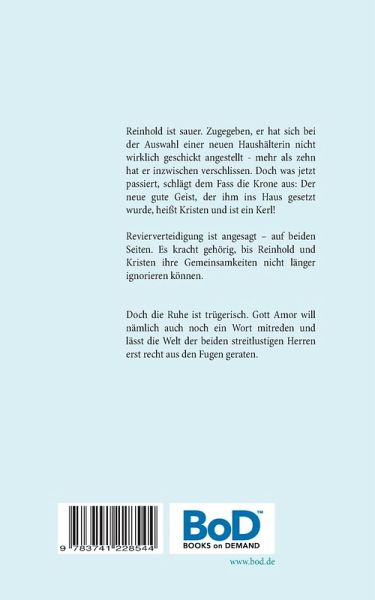 Reinhold ist sauer. Zugegeben, er hat sich bei der Auswahl einer neuen Haushälterin nicht wirklich geschickt angestellt - fünfzehn hat er in genau so vielen Monaten verschlissen. Die Versuche, sein schmuckes Haus im noblen Treppenviertel von Blankenese selbst in Ordnung zu halten, sind... Lassen wir dem Mann seine Würde und sprechen nicht darüber.Doch was jetzt passiert, schlägt dem Fass die Krone aus: Der neue gute Geist, der ihm ins Haus gesetzt wurde, heißt Kristen und ist... ein Kerl!Revierverteidigung ist angesagt - auf beiden Seiten. Es kracht gehörig, bis Reinhold und Kristen ihre Gemeinsamkeiten nicht länger ignorieren könnenDoch die Ruhe ist trügerisch. Gott Amor will nämlich auch noch ein Wort mitreden und lässt die Welt der beiden streitlustigen Herren erst recht aus den Fugen geraten.