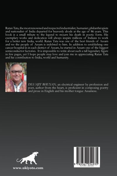 Ratan Tata, the most renowned and respected industrialist, humanist, philanthropists and nationalist of India departed for heavenly abode at the age of 86 years. This book is a small tribute to the legend to mourn his death in poetic form. His exemplary works and dedication will always inspire millions of Indians to work for a better new India, world. Ratan Tata was one of the best friends of Assam and we the people of Assam is indebted to him. In addition to establishing one cancer hospital in in each district of Assam, he started in Assam one of the biggest semiconductor factories. It is impossible to write about such a tall legendary figure in few pages, yet I hope people may love and join me in appreciating Ratan Tata and his contribution to India, world and humanity.