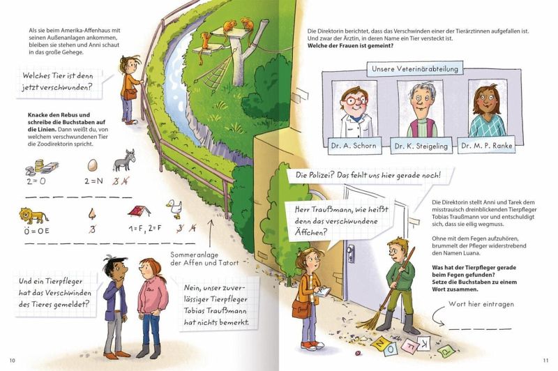 Kommissarin Anni und ihr Kollege Tarek bearbeiten einen kniffligen Fall und brauchen Unterstützung. Wer hat das wertvolle Äffchen aus dem Zoo entführt? Ist es tatsächlich der Tierpfleger oder kommt noch jemand anderes in Frage? Das kann nur mithilfe zahlreicher Rätsel gelöst werden.