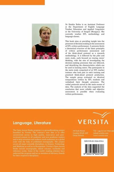 The study focuses on the investigation of the process during which raters of EFL written performance make their decisions. It consists of a pilot and a main study, each of which concentrates on assessment of writing. The rationale is to detect the decision-making processes that raters follow, which can be used for training raters, and with which the reliability of rating can be improved. The pilot study is based on data collected during a large-scale language proficiency assessment of two age groups from learners of English and German languages. Raters were asked to think aloud during the rating task. Data was then transcribed and analysed. The participants in the main study were novice raters, who produced verbal protocols. 37 EFL teacher trainees took part in rater training and practised think-aloud protocol production. Then, they evaluated ten compositions written by EFL learners and verbalised their thought processes. The verbal protocols served as a basis for data collection. The analysis of data resulted in the conclusion according to which more reliable and objective assessment is possible when evaluating written performance.