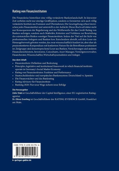 Die Finanzkrise hinterlässt eine völlig veränderte Bankenlandschaft. In kürzester Zeit zerfielen nicht nur einstige Großbanken, sondern es formierten sich auch völlig veränderte Institute aus Fusionen und Übernahmen. Der verschärfte Wettbewerb unter Banken wird nicht nur unter dem Joch einer ungelösten Staatsschuldenkrise ausgetragen, sondern auch unter erhöhtem Druck der Bankenaufsicht und der nächsten Generation von Finanzdienstleistern. Viele Geschäftsmodelle wurden erst durch neue Informations- und Kommunikationstechnologien möglich und harren auf Bewährung in der Praxis. Die Gesetzgebung erfasst inzwischen jedes Finanzinstitut und unterstellt es der Aufsicht. Das Buch zeigt nicht nur Konsequenzen der Regulierung und des Wettbewerbs für das Credit Rating von Banken, sondern auch Maßstäbe, Kriterien und Verfahren zur Beurteilung des existentiellen Risikos sonstiger Finanzinstitute auf.