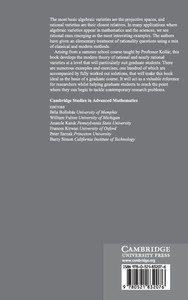 The most basic algebraic varieties are the projective spaces, and rational varieties are their closest relatives. In many applications where algebraic varieties appear in mathematics and the sciences, we see rational ones emerging as the most interesting examples. The authors have given an elementary treatment of rationality questions using a mix of classical and modern methods. Arising from a summer school course taught by János Kollár, this book develops the modern theory of rational and nearly rational varieties at a level that will particularly suit graduate students. There are numerous examples and exercises, all of which are accompanied by fully worked out solutions, that will make this book ideal as the basis of a graduate course. It will act as a valuable reference for researchers whilst helping graduate students to reach the point where they can begin to tackle contemporary research problems.