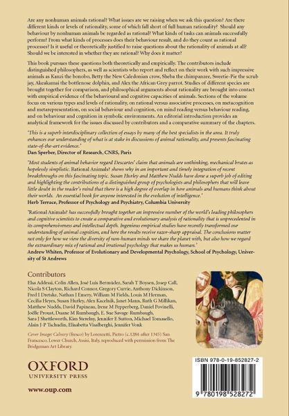 To what extent can animal behaviour be described as rational? What does it even mean to describe behaviour as rational? This book focuses on one of the major debates in science today - how closely does mental processing in animals resemble mental processing in humans. It addresses the question of whether and to what extent non-human animals are rational, that is, whether any animal behaviour can be regarded as the result of a rational thought processes. It does this with attention to three key questions, which recur throughout the book and which have both empirical and philosophical aspects: What kinds of behavioural tasks can animals successfully perform? What if any mental processes must be postulated to explain their performance at these tasks? What properties must processes have to count as rational? The book is distinctive in pursuing these questions not only in relation to our closest relatives, the primates, whose intelligence usually gets the most attention, but also in relation to birds and dolphins, where striking results are also being obtained. Some chapters focus on a particular species. They describe some of the extraordinary and complex behaviour of these species - using tools in novel ways to solve foraging problems, for example, or behaving in novel ways to solve complex social problems - and ask whether such behaviour should be explained in rational or merely mechanistic terms. Other chapters address more theoretical issues and ask, for example, what it means for behaviour to be rational, and whether rationality can be understood in the absence of language. The book includes many of the world's leading figures doing empirical work on rationality in primates, dolphins, and birds, as well as distinguished philosophers of mind and science. The book includes an editors' introduction which summarises the philosophical and empirical work presented, and draws together the issues discussed by the contributors.