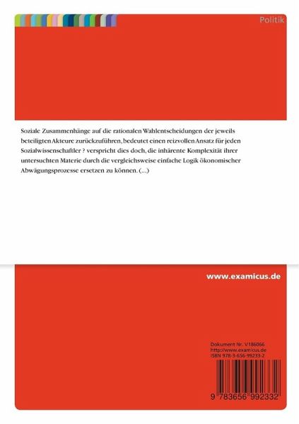 Studienarbeit aus dem Jahr 2003 im Fachbereich Politik - Internationale Politik - Thema: Frieden und Konflikte, Sicherheit, Note: 1.3, Universität Potsdam, Sprache: Deutsch, Abstract: Soziale Zusammenhänge auf die rationalen Wahlentscheidungen der jeweils beteiligten Akteure zurückzuführen, bedeutet einen reizvollen Ansatz für jeden Sozialwissenschaftler ? verspricht dies doch, die inhärente Komplexität ihrer untersuchten Materie durch die vergleichsweise einfache Logik ökonomischer Abwägungsprozesse ersetzen zu können. Eine Welt, in der jeder soziale Vorgang im Endeffekt auf das rationale Nutzenkalkül eines jeden Individuums reduziert werden kann, wird zweifelsohne greif- und erklärbarer. Ausgehend von der Kubakrise 1962 untersucht diese Arbeit die Rationalität getroffener Handlungsentscheidungen nach und analysiert die Bedingungen, die für ein überlegtes Vorgehen in der Politik vonnöten sind.