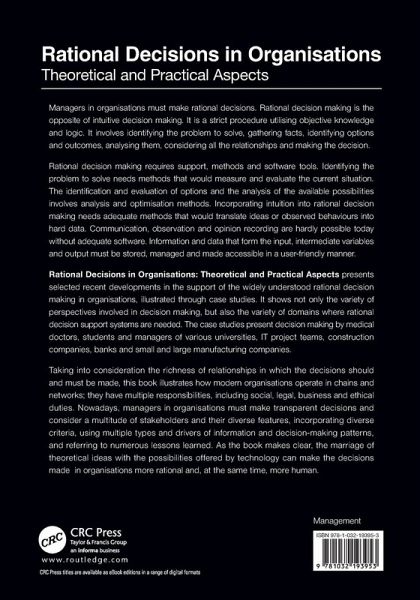 Rational Decisions in Organisations: Theoretical and Practical Aspects presents selected recent developments in the support of the widely understood rational decision making in organisations, illustrated through case studies. The book shows not only the variety of perspectives involved in decision making, but also the variety of domains where rational decision support systems are needed. The case studies present decision making by medical doctors, students and managers of various universities, IT project teams, construction companies, banks and small and large manufacturing companies.