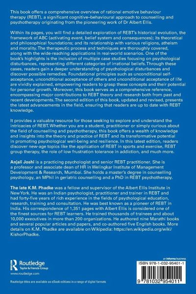 Anjali Joshi is a practicing psychologist and senior REBT practitioner. She is a professor and associate dean of HR in Welingkar Institute of Management Development & Research, Mumbai. She holds a master's degree in counselling psychology, an MPhil in geriatric counselling and a PhD in REBT psychotherapy. The late K.M. Phadke was a fellow and supervisor of the Albert Ellis Institute in New York. He was an Indian psychologist, practitioner and trainer in REBT and had forty-five years of rich experience in the fields of psychological education, research, training and consultation. He was best known as a pioneer of REBT in India. His correspondence of 1351 pages with Albert Ellis is considered one of the finest sources for REBT learners. He trained thousands of trainees and about 10,000 executives in more than 200 organizations. He authored nine Marathi books and several popular articles and papers and co-authored five English books. More details on K. M. Phadke are available on Wikipedia: https://en.wikipedia.org/wiki/KishorPhadke.
