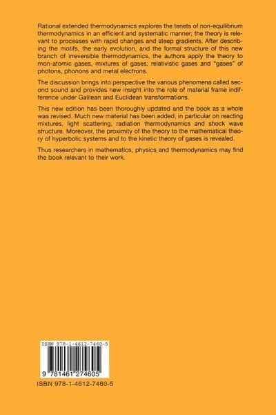 1 Tour d'Horizon.- 2 Early Version of Extended Thermodynamics and Kinetic Theory of Gases.- 1 Paradoxes of Heat Conduction and Shear Diffusion.- 2 Paradox Removed.- 3 Kinetic Theory of Monatomic Gases.- 3 Formal Structure of Extended Thermodynamics.- 1 Field Equations.- 2 Entropy Inequality and Symmetric Hyperbolic Systems.- 3 Main Subsystems.- 4 Galilean Invariance.- 5 Thermodynamics of an Euler Fluid.- 4 Extended Thermodynamics of Monatomic Gases.- 1 The Equations of Extended Thermodynamics of Monatomic Gases.- 2 Constitutive Theory.- 3 Field Equations and the Thermodynamic Limit.- 4 Thermal Equations of State and Ideal Gases.- 5 Thermodynamics of Mixtures of Euler Fluids.- 1 Ordinary Thermodynamics of Mixtures (TIP).- 2 Extended Thermodynamics of Mixtures of Euler Fluids.- 3 Ordinary and Extended Thermodynamics of Mixtures.- 6 Relativistic Thermodynamics.- 1 Balance Equations and Constitutive Restrictions.- 2 Constitutive Theory.- 3 Identification of Viscosities and Heat-Conductivity.- 5 An Application: The Mass Limit of a White Dwarf.- 6 The Relativistic Kinetic Theory for Nondegenerate Gases.- 7 The Nonrelativistic Limit of Relativistic Thermodynamics.- 7 Extended Thermodynamics of Reacting Mixtures.- 1 Motivation, Results, and Discussion.- 2 Fields.- 3 Field Equation.- 4 Entropy Inequality.- 5 Nonrelativistic Limit.- 8 Waves in Extended Thermodynamics.- 1 Hyperbolicity and Symmetric Hyperbolic Systems.- 2 Linear Waves.- 3 Hyperbolicity and Nonlinear Waves..- 4 Acceleration Waves.- 5 Weak Solutions and Shock Waves.- 9 Extended Thermodynamics of Moments.- 1 Field Equations for Moments.- 2 Characteristic Speeds.- 3 Mean Eigenfunctions.- 4 Maximization of Entropy.- 10 Extended Thermodynamics and Light Scattering.- 1 Basic Electrodynamics.- 2 A Modicum of FluctuationTheory.- 3 Measuring the Spectral Density.- 4 Navier-Stokes-Fourier Fluid.- 5 Extended Thermodynamics.- 6 Extrapolation of S(q, ?) for y ? 0.- 11 Testing Extended Thermodynamics by Sound.- 1 Basic Acoustics.- 2 Dispersion Relations.- 3 Maximum Speed.- 12 Structure of Shock Waves.- 1 Experimental Evidence.- 2 Review of Previous Work.- 3 Preliminaries on Singular Points and Characteristic Speeds.- 4 Numerical Calculation of the Shock Structure.- 5 Conclusion.- 6 Addendum on Initial Value Problem for 13 Moments.- 7 Quantitative Results and Conclusions.- 13 Extended Thermodynamics of Radiation.- 1 Structure of Extended Thermodynamics of Photons.- 2 Equilibrium.- 3 Near Equilibrium.- 4 Field Equations.- 5 Local Radiative Equilibrium.- 6 Compression of Radiation.- 7 Penetration of a Beam of Radiation into Matter.- 8 Radiative Entropy in Gray Bodies.- 14 Extended Thermodynamics of Phonons.- 1 Phonon Transfer Equation.- 2 Moments and Moment Equations.- 3 The Heat Pulse Experiment.- 15 Thermodynamics of Metal Electrons.- 1 Equations of Balance.- 2 Extended Thermodynamics and Kinetic Theory.- 16 Viscoelastic Fluids.- 1 Viscoelastic Fluids of Second Grade.- 2 Rate-Type versus Differential-Type Constitutive Equations.- 3 Toward Extended Thermodynamics of Viscoelasticity.