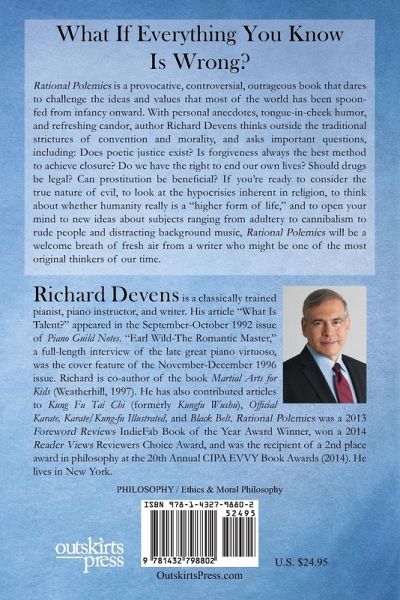 Rational Polemics: Tackling the Ethical Dilemmas of Life There's a whole host of beliefs that most people simply repeat without question. They are chanted so often as to have nearly lost all meaning, and are rarely challenged. Rational Polemics dares to expose the contradictions that are rife in many of these blindly accepted beliefs. The book endeavors to question all things - to expose the folly and hypocrisy of universally held beliefs, including accepted religious dogma. It is geared toward open-minded readers with the courage to challenge convention and political correctness to consider alternative viewpoints. Rational Polemics by Richard Devens presents a provocative, controversial, outrageous challenge to the ideas and values that most of the world merely accepts "on faith - ideas that, upon closer examination, make little sense. "I wrote this book to encourage people not to blindly accept what others believe just because it is 'politically correct' to do so, or just because the majority does," Devens says. "I encourage people to think for themselves, and to live by the courage of their convictions. I encourage people to have the integrity of living by their own moral code if, by rational thought and reflection, they are convinced they are right." Told through personal anecdotes, with tongue-in-cheek humor and refreshing candor, Rational Polemics is a breath of fresh air to anyone ready to consider the true nature of evil, the hypocrisies inherent in religion and other prickly debates. Rational Polemics opens readers' minds to new ideas about deep and often difficult topics, sans the sugarcoating.