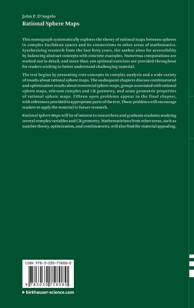 The text begins by presenting core concepts in complex analysis and a wide variety of results about rational sphere maps. The subsequent chapters discuss combinatorial and optimization results about monomial sphere maps, groups associated with rational sphere maps, relevant complex and CR geometry, and some geometric properties of rational sphere maps. Fifteen open problems appear in the final chapter, with references provided to appropriate parts of the text. These problemswill encourage readers to apply the material to future research.