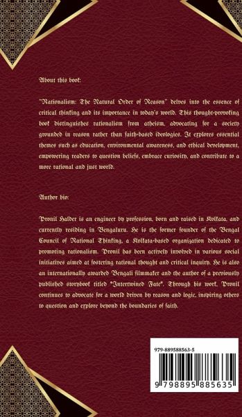 Rationalism: The Natural Order of Reason is a call to challenge long-held beliefs and embrace a life led by logic and critical thinking. Whether you're a skeptic, a religious person curious about rationalism, or someone who questions faith-based systems, this book offers a path to understanding the world through reason. The book explores the urgent need to establish organized rational societies to counter the influence of faith-based ideologies that limit human potential. Pronil advocates for a society that promotes logical thinking, environmental awareness, positive ethics, creativity, and mental and physical well-being. He explains why faith-based practices, even when seemingly harmless, can have far-reaching negative impacts on individuals and society as a whole. Rationalism: The Natural Order of Reason challenges readers to confront their deepest beliefs and assumptions, urging them to foster an open mind that welcomes reason and evidence. This book is a must-read for those who feel the pull of curiosity and are ready to explore the world beyond dogma and superstition, unlocking their full intellectual potential.