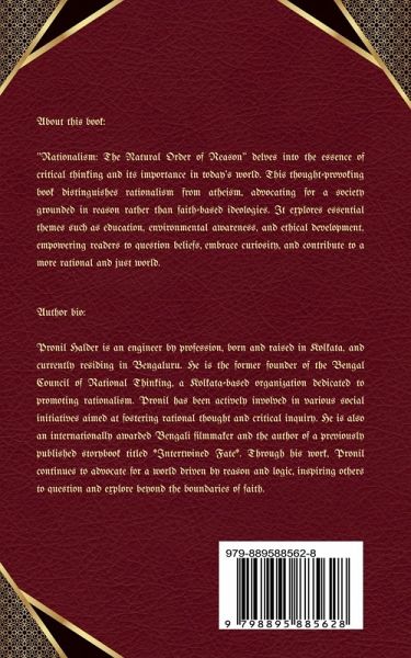 Rationalism: The Natural Order of Reason is a call to challenge long-held beliefs and embrace a life led by logic and critical thinking. Whether you're a skeptic, a religious person curious about rationalism, or someone who questions faith-based systems, this book offers a path to understanding the world through reason. The book explores the urgent need to establish organized rational societies to counter the influence of faith-based ideologies that limit human potential. Pronil advocates for a society that promotes logical thinking, environmental awareness, positive ethics, creativity, and mental and physical well-being. He explains why faith-based practices, even when seemingly harmless, can have far-reaching negative impacts on individuals and society as a whole. Rationalism: The Natural Order of Reason challenges readers to confront their deepest beliefs and assumptions, urging them to foster an open mind that welcomes reason and evidence. This book is a must-read for those who feel the pull of curiosity and are ready to explore the world beyond dogma and superstition, unlocking their full intellectual potential.