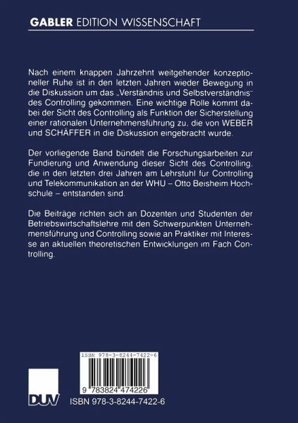 Der vorliegende Band bündelt die Forschungsarbeiten zur Fundierung und Anwendung dieser Sicht des Controlling, die in den letzten drei Jahren am Lehrstuhl für Controlling und Telekommunikation an der WHU - Otto Beisheim Hochschule - entstanden sind.
