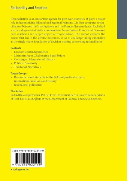 Reconciliation is an important agenda for postwar countries. It plays a major role in harmonizing bilateral and regional relations. Lin Ren compares reconciliations between the Sino-Japanese and the Franco-German dyads. Each dyad shares a deep-rooted historic antagonism. Nevertheless, France and Germany reached a far deeper degree of reconciliation. Therefore, this book devotes to explore the "trouble-creators" that led to the diverse outcomes, so as to challenge taking rationality as the single micro-foundation of decision making concerning reconciliation.