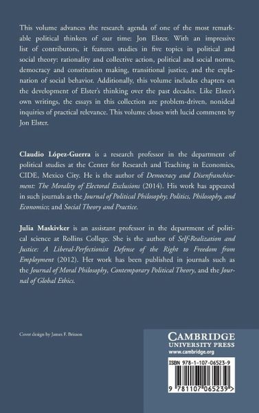 This volume advances the research agenda of one of the most remarkable political thinkers of our time: Jon Elster. With an impressive list of contributors, it features studies in five topics in political and social theory: rationality and collective action, political and social norms, democracy and constitution making, transitional justice, and the explanation of social behavior. Additionally, this volume includes chapters on the development of Elster's thinking over the past decades. Like Elster's own writings, the essays in this collection are problem-driven, non-ideal inquiries of practical relevance. This volume closes with lucid comments by Jon Elster.