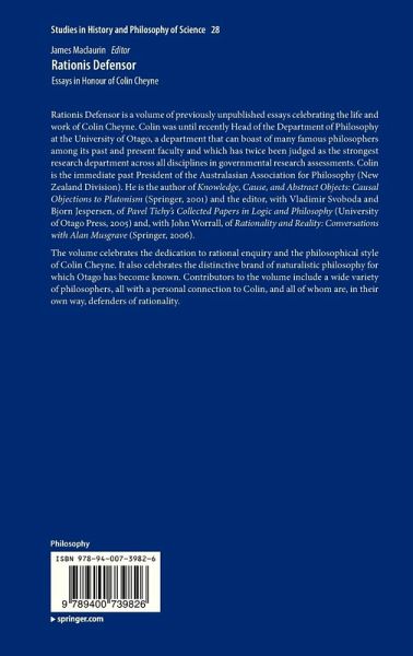 Rationis Defensor is to be a volume of previously unpublished essays celebrating the life and work of Colin Cheyne. Colin was until recently Head of the Department of Philosophy at the University of Otago, a department that can boast of many famous philosophers among its past and present faculty and which has twice been judged as the strongest research department across all disciplines in governmental research assessments. Colin is the immediate past President of the Australasian Association for Philosophy (New Zealand Division). He is the author of Knowledge, Cause, and Abstract Objects: Causal Objections to Platonism (Springer, 2001) and the editor, with Vladimir Svoboda and Bjorn Jespersen, of Pavel Tichy's Collected Papers in Logic and Philosophy (University of Otago Press, 2005) and, with John Worrall, of Rationality and Reality: Conversations with Alan Musgrave (Springer, 2006).This volume celebrates the dedication to rational enquiry and the philosophical style of Colin Cheyne. It also celebrates the distinctive brand of naturalistic philosophy for which Otago has become known. Contributors to the volume include a wide variety of philosophers, all with a personal connection to Colin, and all of whom are, in their own way, defenders of rationality.